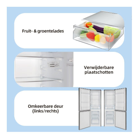 Met een totale inhoud van 157 liter, een strak donker roestvrijstalen design en omkeerbare deuren is dit apparaat de perfecte combinatie van elegantie en gebruiksgemak.