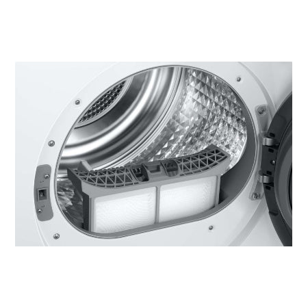 Met drie slimme sensoren bepaalt de droger precies hoe lang en hoe warm er gedroogd moet worden. Zo is je kleding sneller klaar, verbruik je minder energie en blijft je kleding beter beschermd. Je krijgt bovendien een melding wanneer het tijd is om de warmtewisselaar te reinigen.