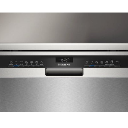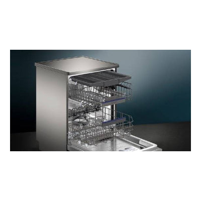 De Siemens SN25ZI08CE iQ500 vrijstaande vaatwasser is een geavanceerd apparaat met een roestvrijstalen afwerking en de innovatieve Home Connect Zeolith®-technologie.