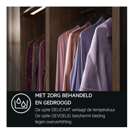 Wol krimpt niet, zijde behoudt zijn vorm, en outdoorkleding krijgt zijn waterafstotende eigenschappen terug. De droger is bovendien Woolmark-gecertificeerd, wat staat voor bewezen textielzorg.