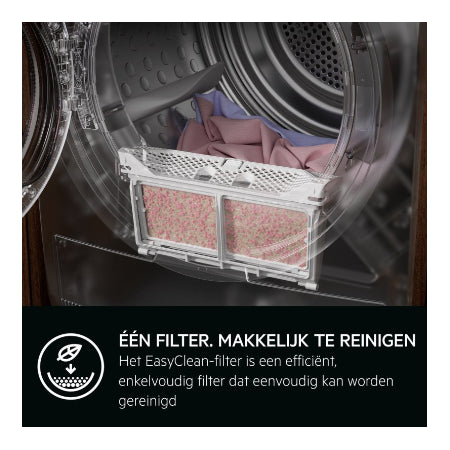 De droger behoort tot de absolute top in efficiëntie. Je droogt met een laag energieverbruik, een fluisterstil geluidsniveau en een uitstekende condensatie-efficiëntie. Zo blijft de luchtvochtigheid in de wasruimte onder controle en bespaar je tegelijkertijd op energie.