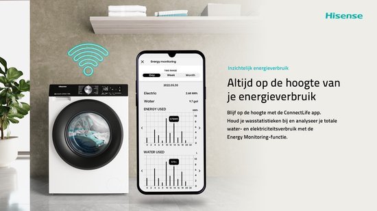 Met de ConnectLife-technologie kun je je wasmachine via WiFi bedienen en monitoren, zelfs als je niet thuis bent. Controleer je energieverbruik, selecteer extra wasprogramma’s en bedien de wasmachine via je smartphone of slim thuisapparaat, zodat je de wasdag moeiteloos kunt regelen.