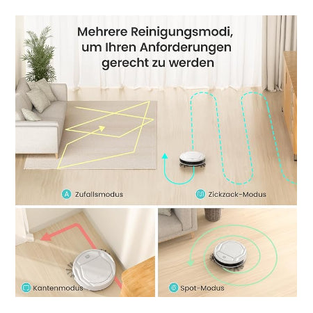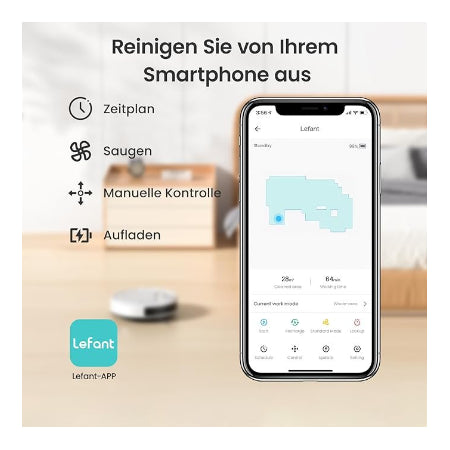 Vier reinigingsmodi voor jouw behoeften: De robotstofzuiger biedt vier reinigingsmodi: auto-reiniging, puntreiniging, randreiniging en zigzag-reiniging. Je kunt eenvoudig tussen de verschillende modi en vermogensniveaus schakelen via de Lefant-app.