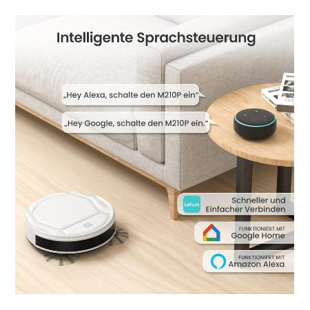 Intelligente app en eenvoudige bediening: Bedien de robotstofzuiger altijd en overal via de Lefant-app of de afstandsbediening. Pas het zuigvermogen en reinigingsschema aan. Bovendien kun je de robotstofzuiger bedienen met spraakopdrachten via Google Assistant of Alexa. Opmerking: alleen 2,4 GHz wifi wordt ondersteund.
