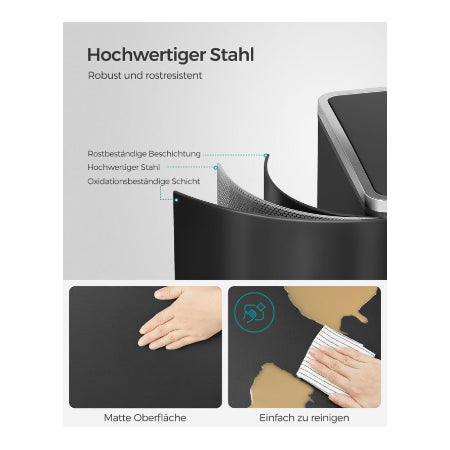 Een echte aanwinst voor je keuken: Een prullenbak hoeft niet altijd een doorn in het oog te zijn. Dankzij de elegante zwarte kleur en het strakke ontwerp is deze prullenbak van SONGMICS een stijlvolle toevoeging aan je keuken.