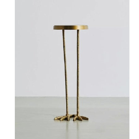 Gouden metalen bijzettafel met vogelachtige vorm en twee vogelpootjes is nabesteld en wordt verzonden zodra het weer op voorraad is.