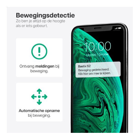 - Bewegingsdetectie: Ja, inclusief meldingen en automatische opname