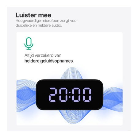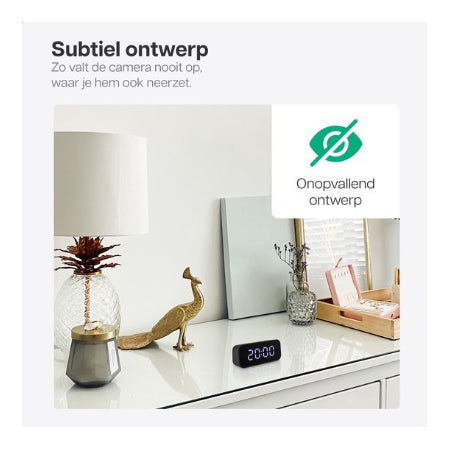 Het slimme design maakt dat de camera eruitziet als een gewone klok. De lens is volledig onzichtbaar, ideaal voor thuis, op kantoor of als nannycam.