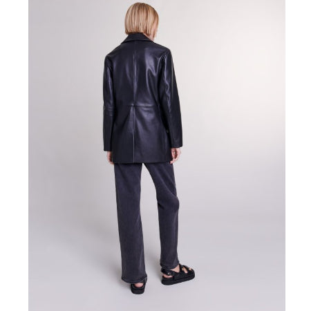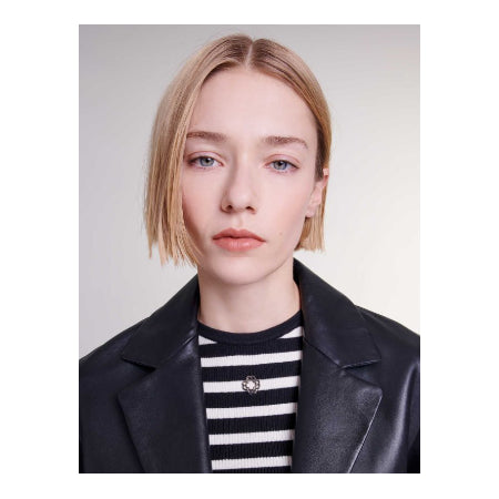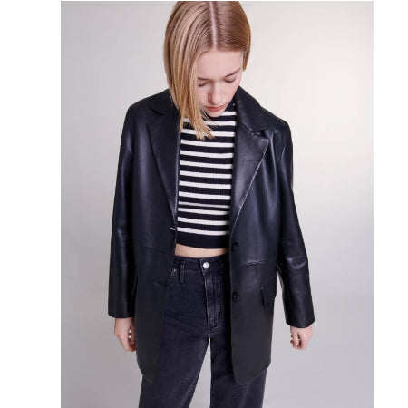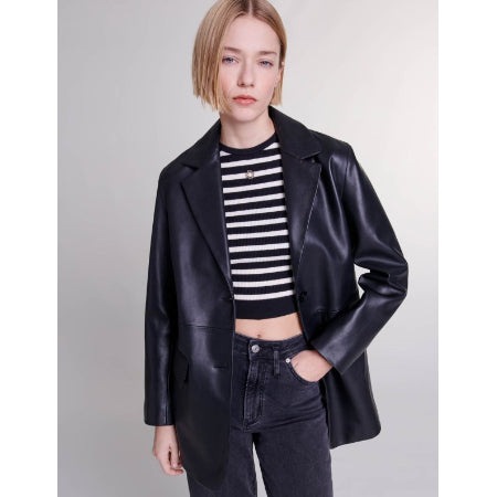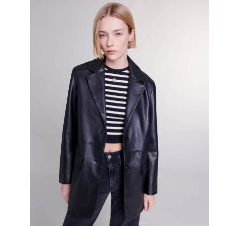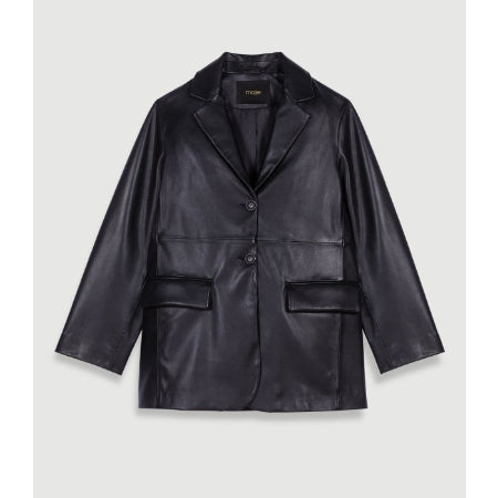 Maje - zwarte leren dames jas - Maat 38 is nabesteld en wordt verzonden zodra het weer op voorraad is.