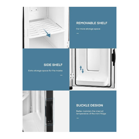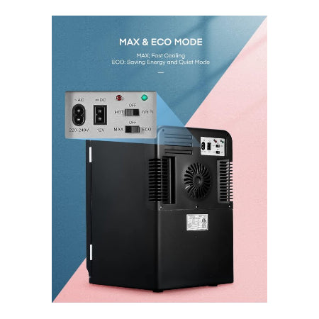 Deze minikoelkast is uitgerust met zowel een koel- als verwarmingsfunctie. In de zomer houdt hij je drankjes en huidverzorgingsproducten koel, terwijl hij in de winter je lunch warm houdt. De koelkast kan tot 15–20°C onder de omgevingstemperatuur koelen en tot 65°C verwarmen, afhankelijk van de instelling.