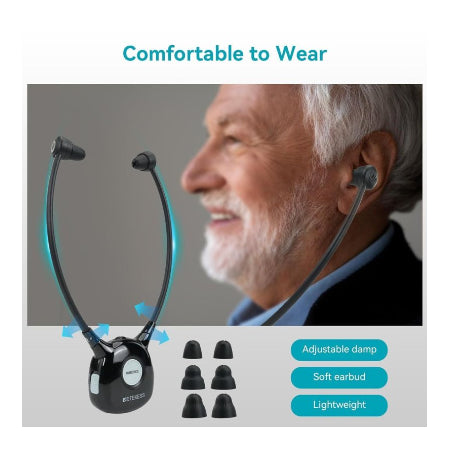Deze hoofdtelefoon is ideaal voor mensen die hun TV-geluid willen versterken zonder anderen te storen en biedt maximaal comfort voor langdurig gebruik.
